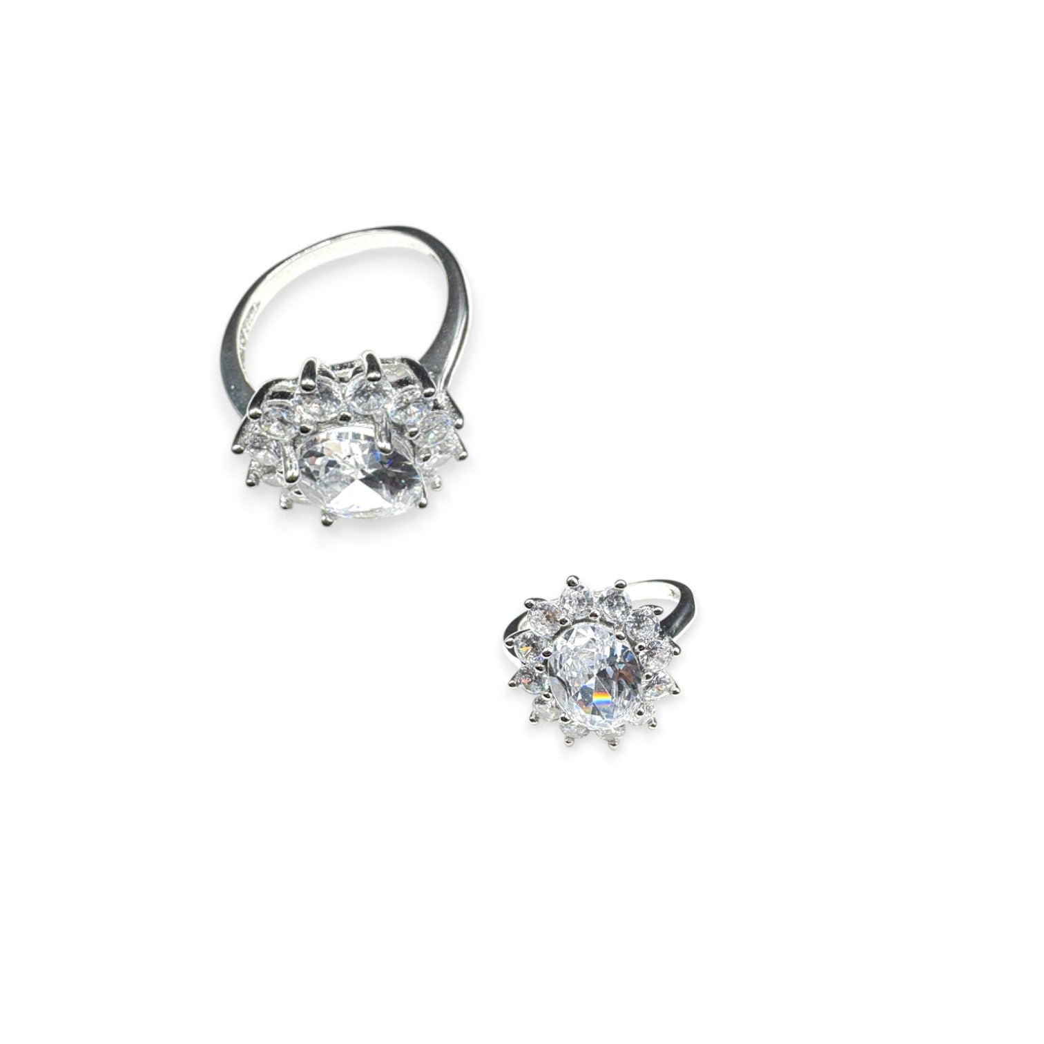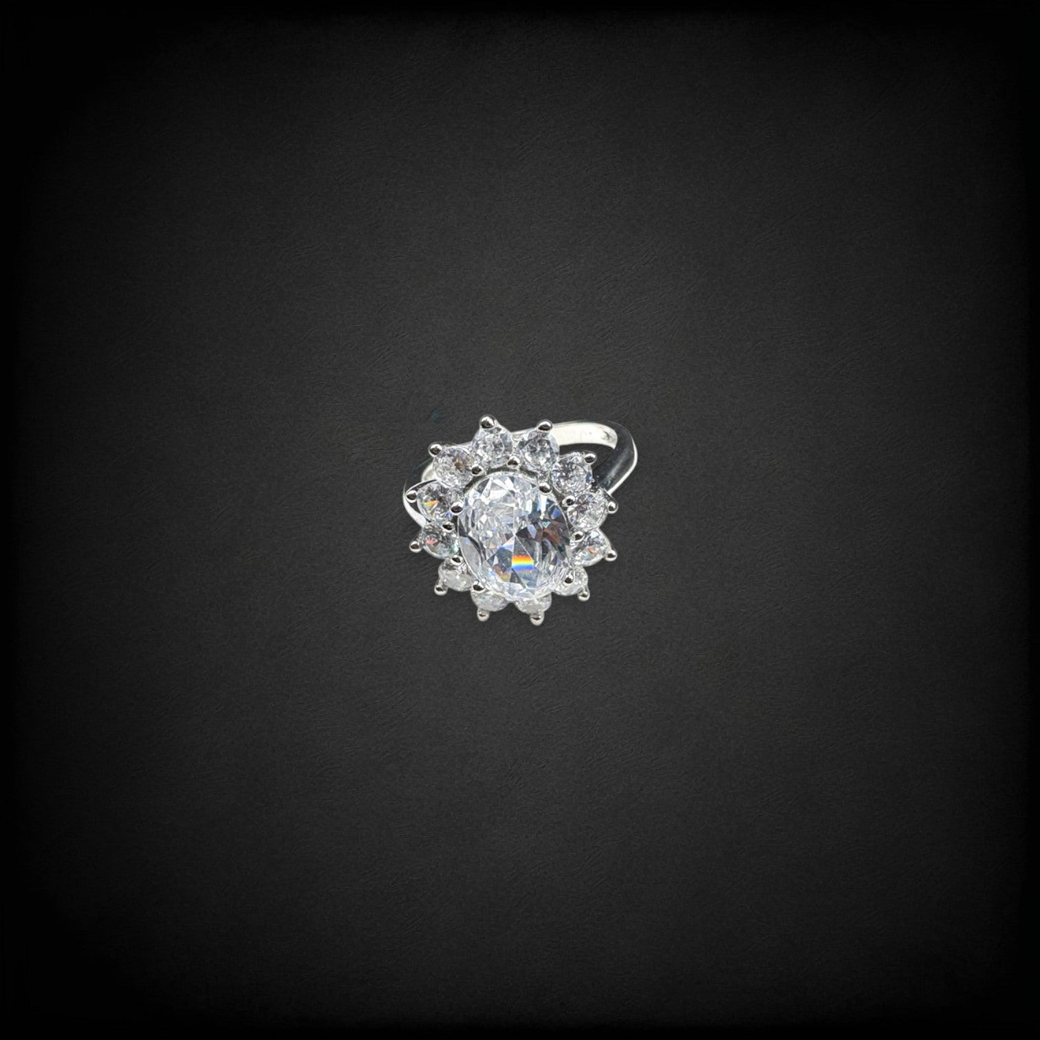 Oval Diamond Silver Ring