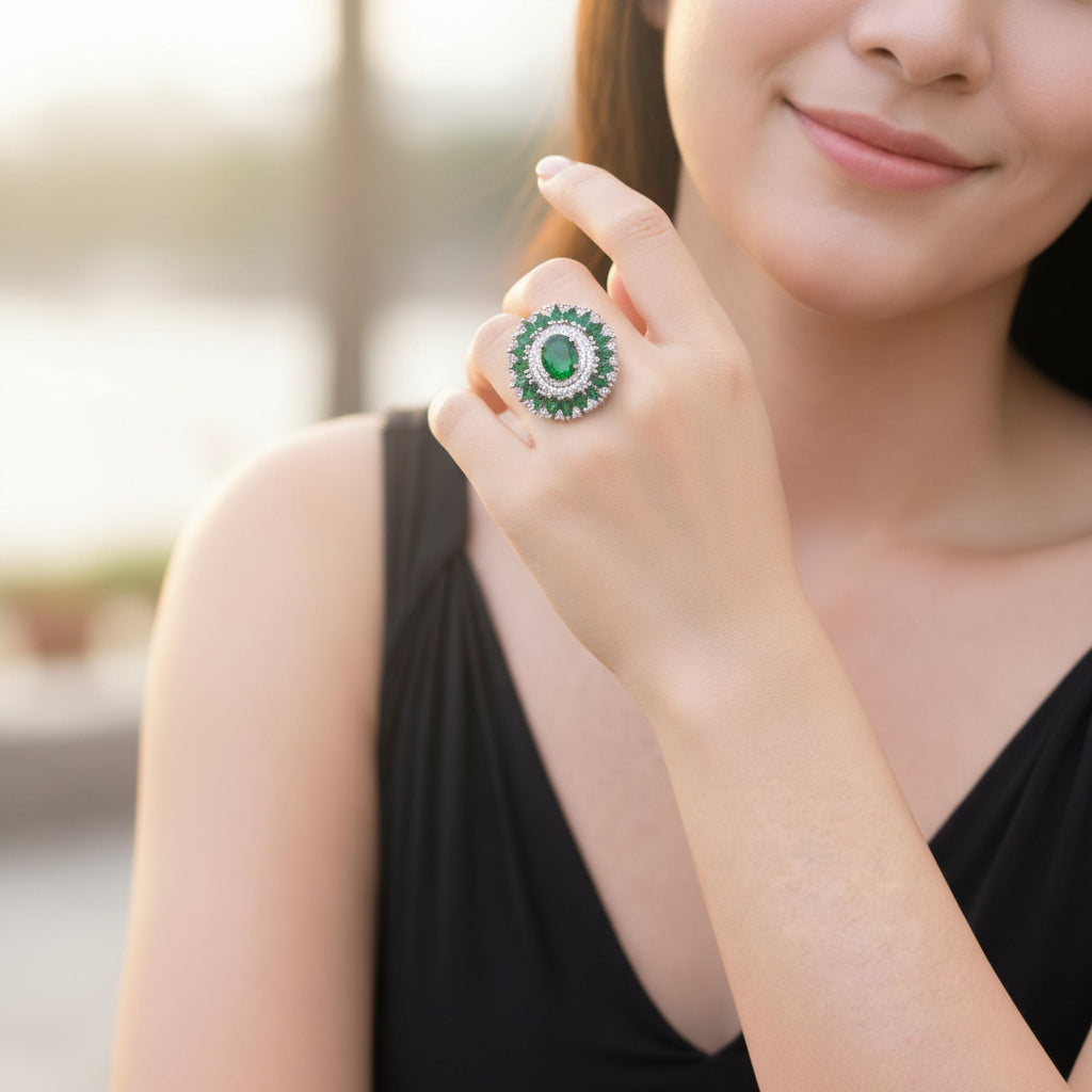 Party Wear Green Stone Silver Ring